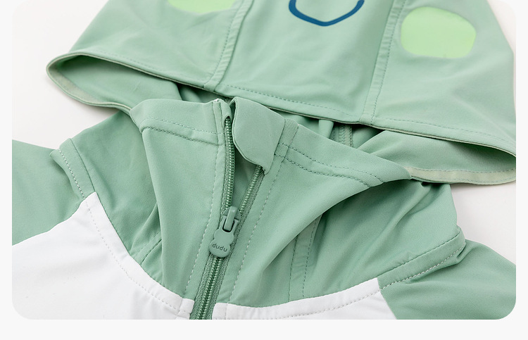 適用性別:中立/男女皆可適合年齡:嬰幼兒(1~3歲,80~100cm)適合季節:夏季厚薄:薄款是否連帽:連帽袖長:長袖布料:88.3%棉綸,11.7%氨綸顏色:粉色,藍色,綠色