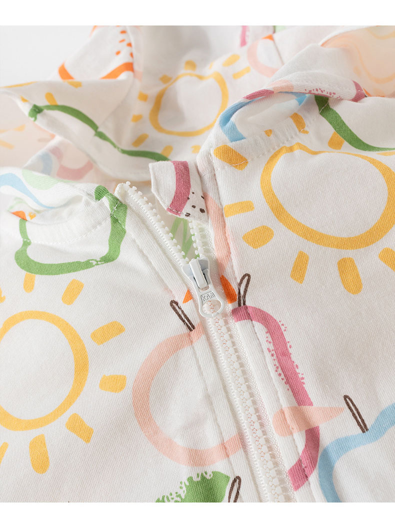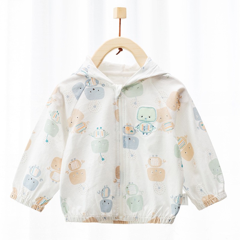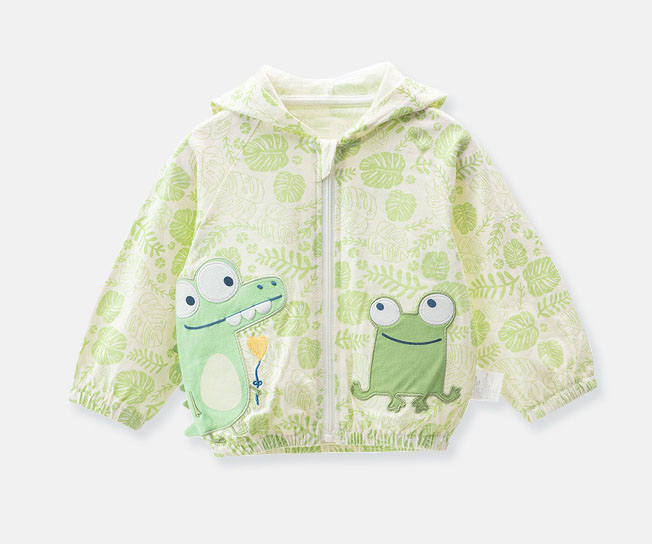 適用性別:中立/男女皆可適合年齡:嬰幼兒(1~3歲,80~100cm)領型:圓領適合季節:夏季厚薄:薄款是否連帽:連帽袖長:長袖衣長:短款布料:100%棉閉合款式:拉鍊衫顏色:湖水藍,綠色恐龍,機器人,牛奶白,水果綠,草木杏莫代爾布料適合身高:80cm-120cm