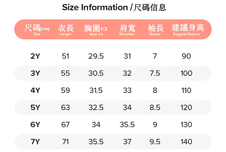適合身高:2Y(90cm)-7Y(140cm)