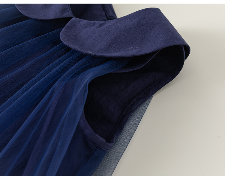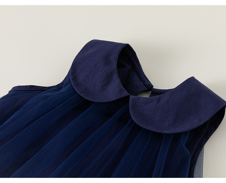 風格:甜美布料:棉裙類別:洋裝布料:100%棉適用性別:女適合年齡層:中小童(3~8歲,100~140cm)適合季節:夏季款式:無袖裙擺樣式:A字裙元素:網紗顏色:深藍色,白色,綠色適合身高:80cm-140cm