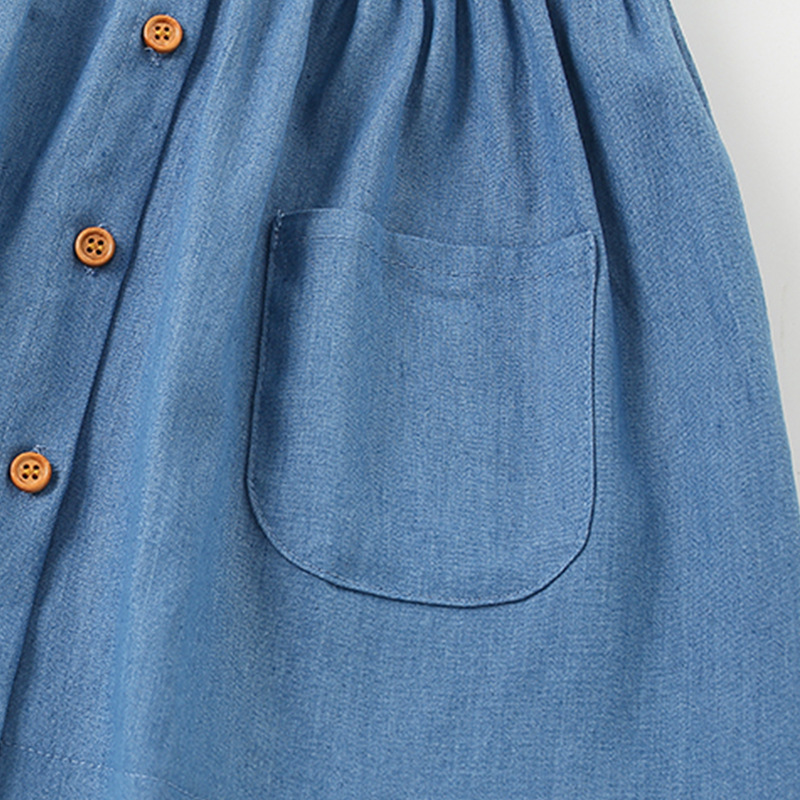 風格:歐美布料:100%棉裙類別:洋裝適用性別:女適合年齡層:中小童(3~8歲,100~140cm)適合季節:夏季款式:短袖顏色:牛仔藍適合身高:90cm-140cm
