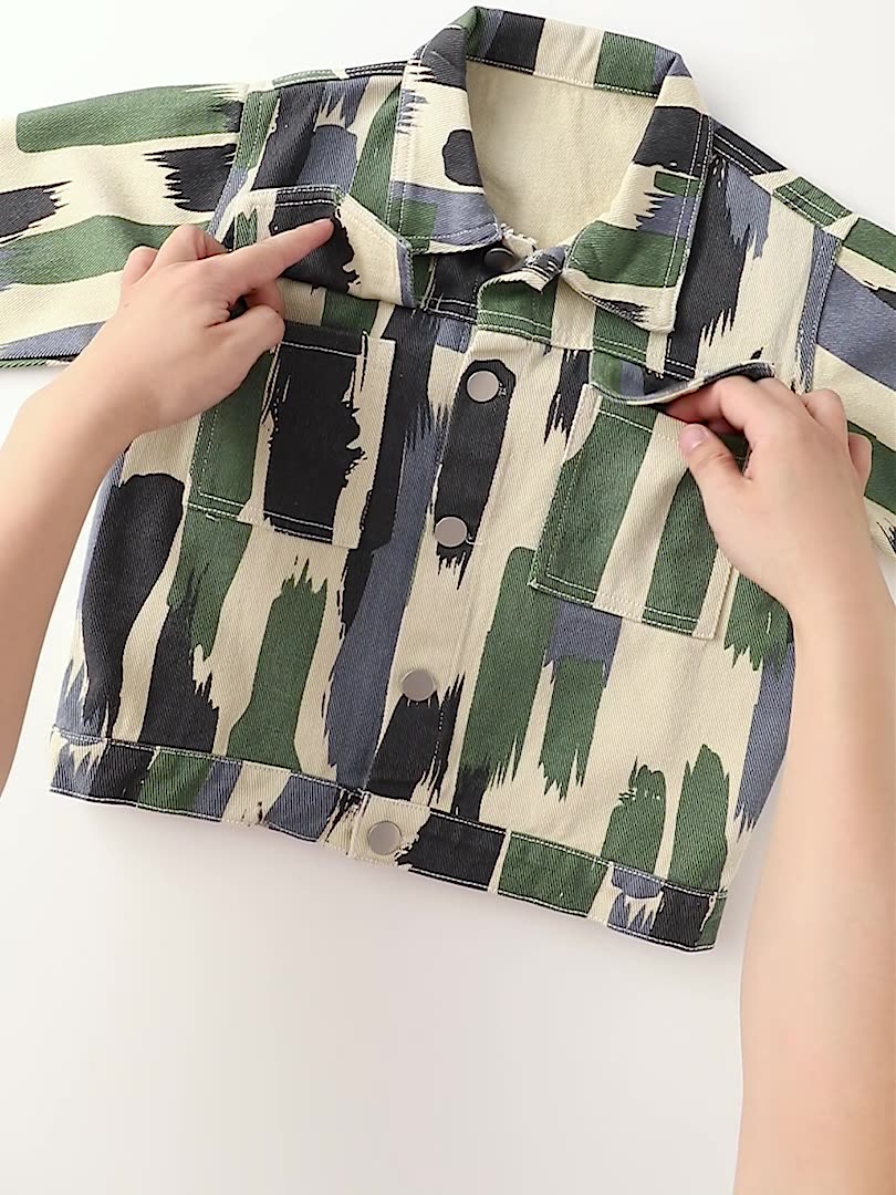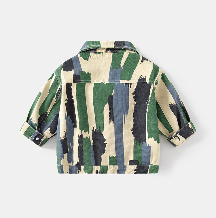 布料:98%棉風格:休閒適用性別:男厚薄:普通適合季節:春秋顏色:塗鴉牛仔外套適合身高:90CM-130CM適合年齡層:中小童(3~8歲,100~140cm)