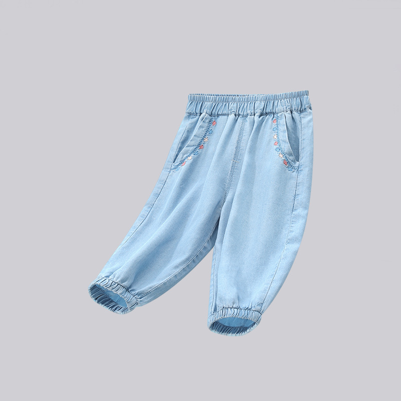 風格:休閒面料:100%萊賽爾褲長:長褲適用性別:中性/男女均可適合年齡段:中小童(3~8歲,100~140cm)適合季節:夏季是否開襠:是褲門襟:皮筋腰帶顏色:刺繡眼睛,刺繡小花,簡約大口袋,花邊適合身高:80cm-150cm