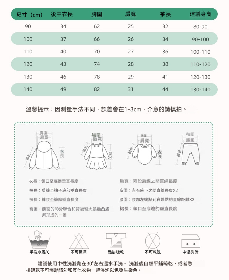 ※ 衣物洗滌及保養方式請參考商品洗標。