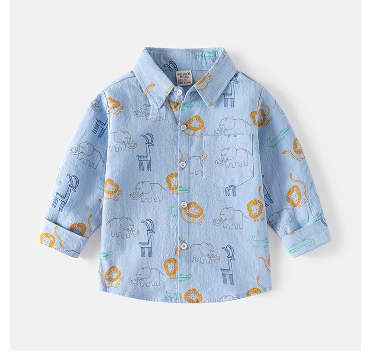 適用性別:男適合年齡層:中小童(3~8歲,100~140cm)領型:翻領袖長:長袖適合季節:秋季布料:100%棉顏色:淺藍動物園襯衫,米白動物園襯衫適合身高:90cm-130cm