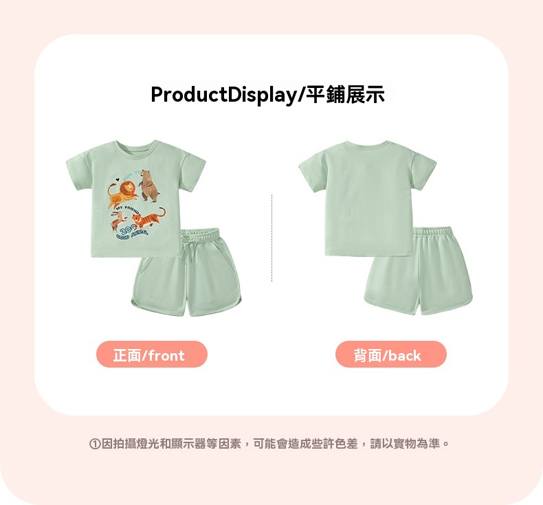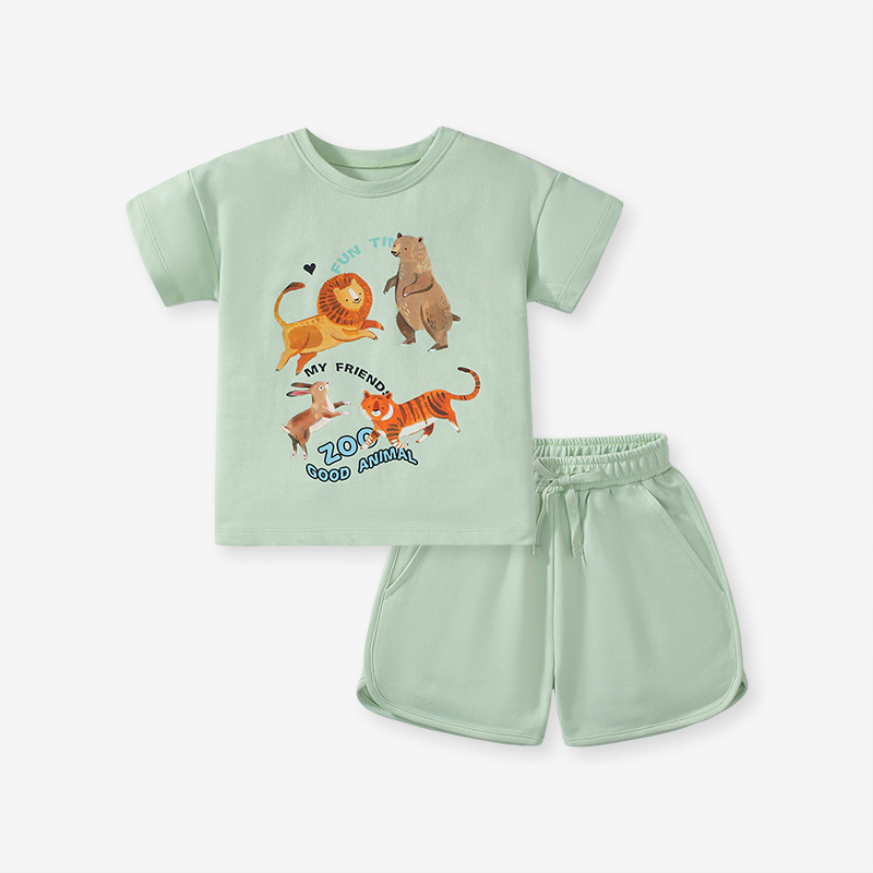 適用性別:女風格:歐美套裝類型:褲套裝套裝件數:兩件套裝適合年齡層:中小童(3~8歲,100~140cm)適合季節:夏季袖長:短袖褲長:短褲厚薄:普通布料:100%棉顏色:動物園適合身高:2Y(90cm)-7Y(140cm)