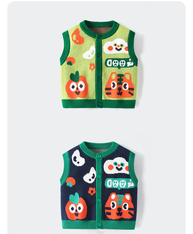 適用性別:中性/男女均可適合年齡段:中小童(3~8歲,100~140cm)適合季節:春季,秋季毛線粗細:細毛線厚薄:薄款袖長:無袖閉合款式:單排扣面料:100%棉領型:圓領顏色:藏藍,綠色適合身高:80cm-140cm衣門襟:單排扣