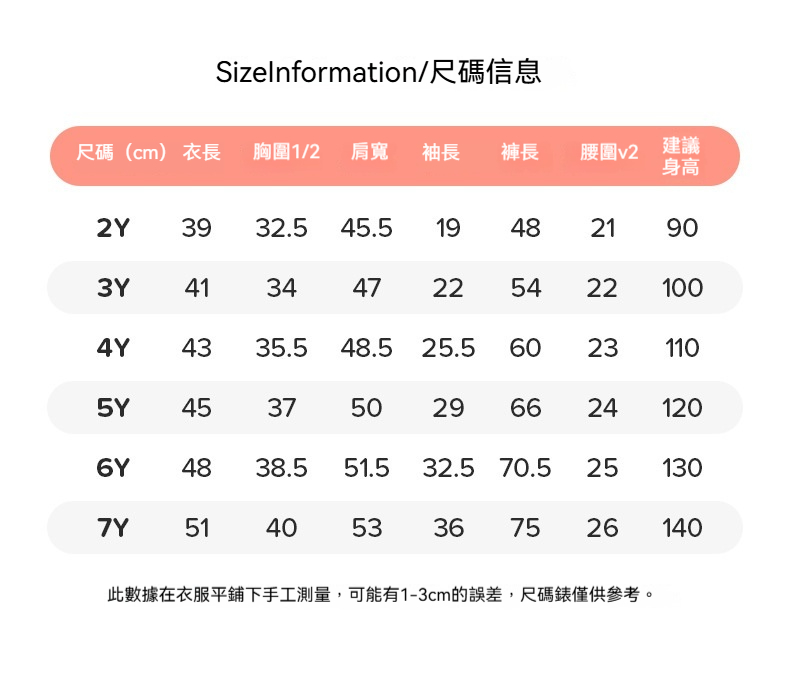 面料:上衣100%棉、褲子95%棉,5%氨綸